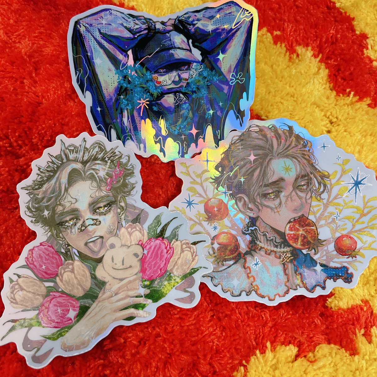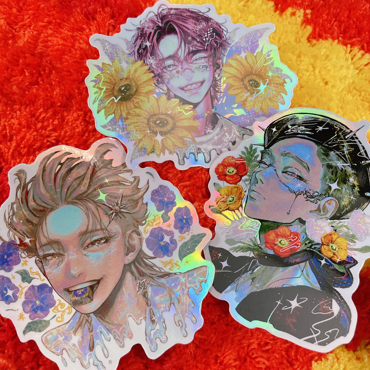 💙💙💙ステッカーセット②💙💙💙 New!! 3枚セットのきらきらホロレインボーステッカー!全4種! たいと、たろ、みつきの3枚🥕 #コミティア143 twitter.com/hiiro753/statu…