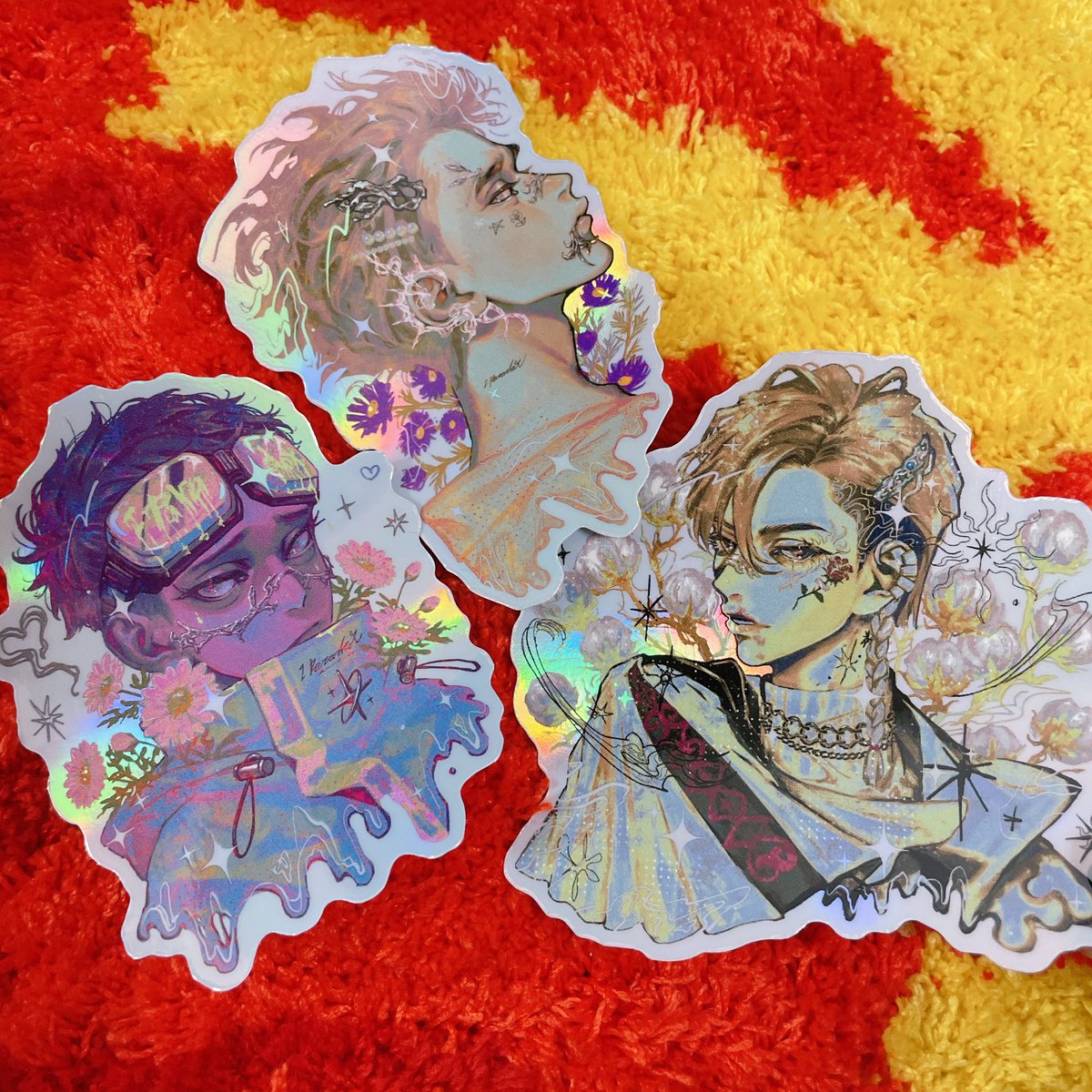 🤍🤍🤍ステッカーセット③🤍🤍🤍 New!! 3枚セットのきらきらホロレインボーステッカー!全4種! たろ、うづき、りんたろの3枚🌐 #コミティア143 twitter.com/hiiro753/statu…
