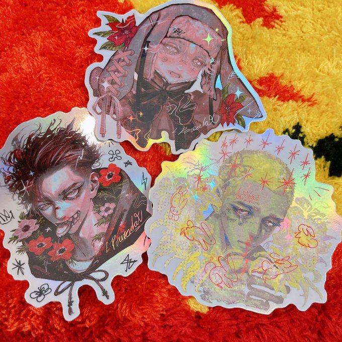 ❤️❤️❤️ステッカーセット④❤️❤️❤️ New!! 3枚セットのきらきらホロレインボーステッカー!全4種! 堺、みつき、航輝の3枚🍒 #コミティア143 twitter.com/hiiro753/statu…