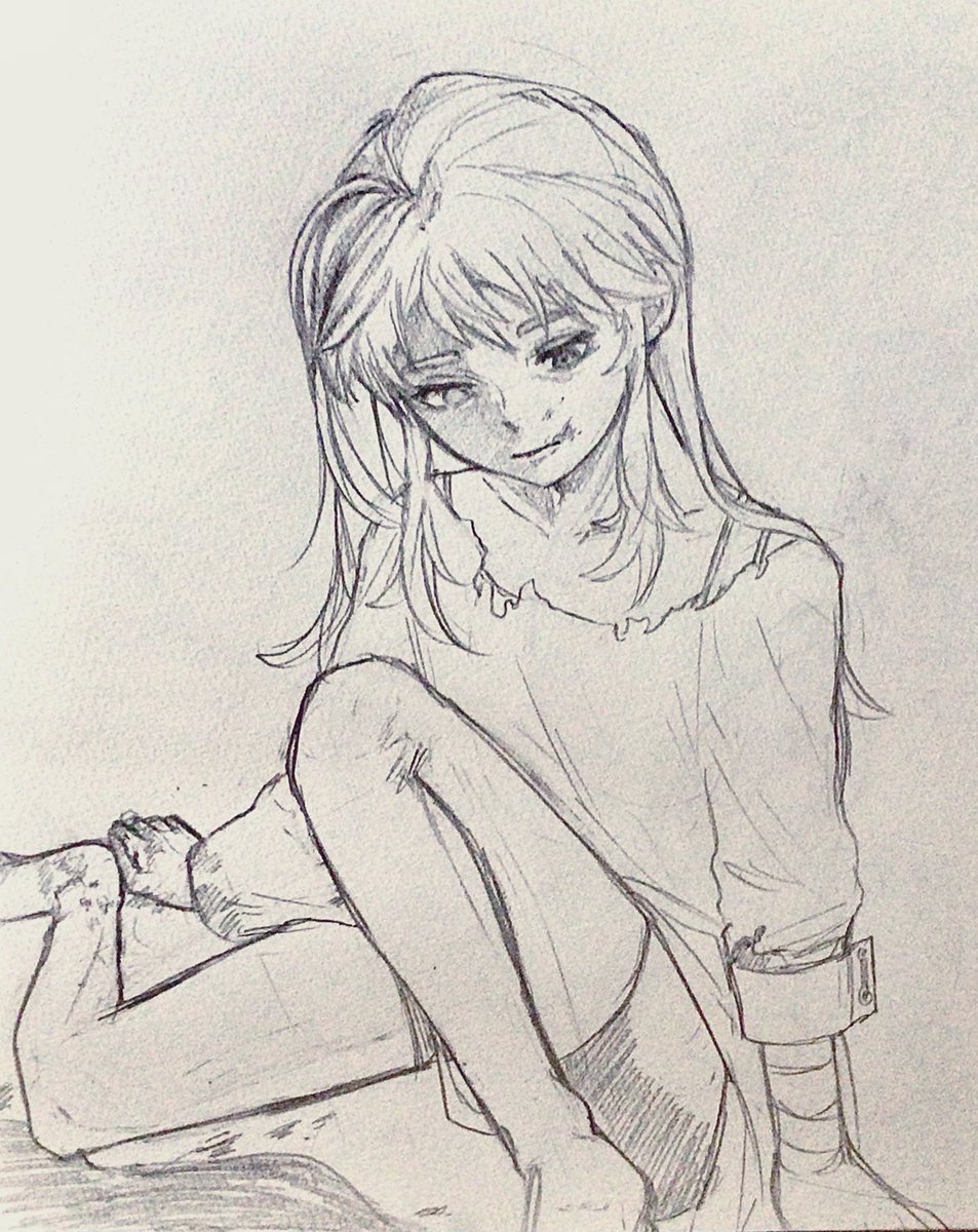 #イラスト #アナログ 人間の皮を被った少女(エリー)
