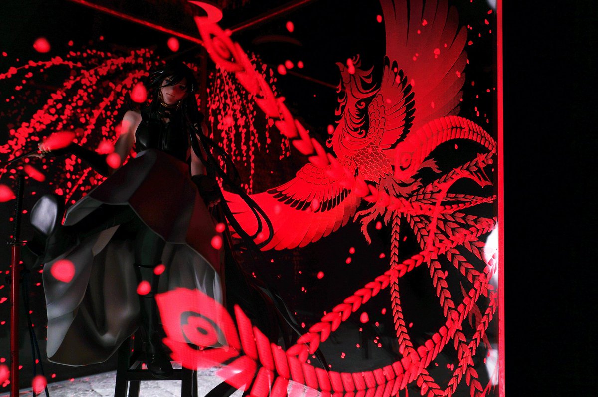 今回の鶴さんもお客様がイメージしてイラストを元に、うちでデザインさせていただきました。全面デザインヨメテラス(@yometerrace)付きです😊空間演出は素晴らしいとおもいます😊 #刀剣乱舞 #鶴丸 #黒鶴