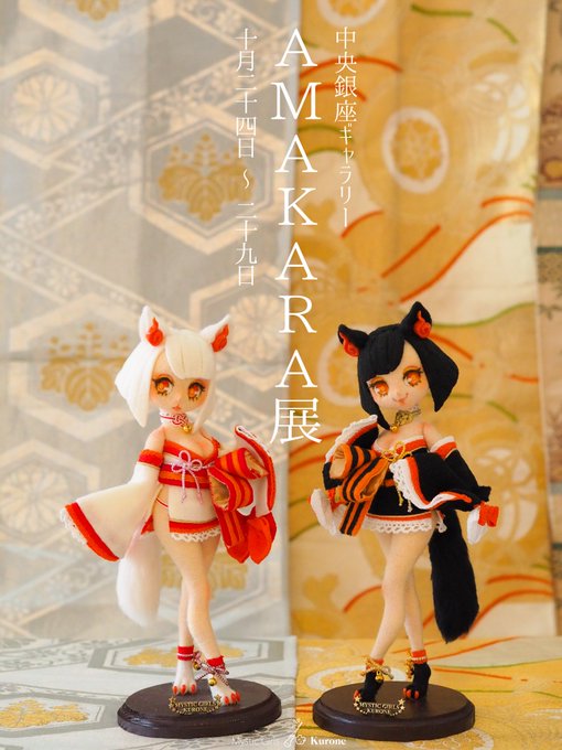 🌟展示会参加🌟 中園ゆうこ主催グループ展 【AMAKARA展】 10月24日(月)~29日(土) 12~19時(最終日17時迄) 場所・銀座中央ギャラリー 新作人形『稲荷様(巴衛・珠寧)』を展示販売いたします🦊私は立体作品でお邪魔させてもらいます!お時間合う方は是非見に来てください♪ chuogallery.com/index.html