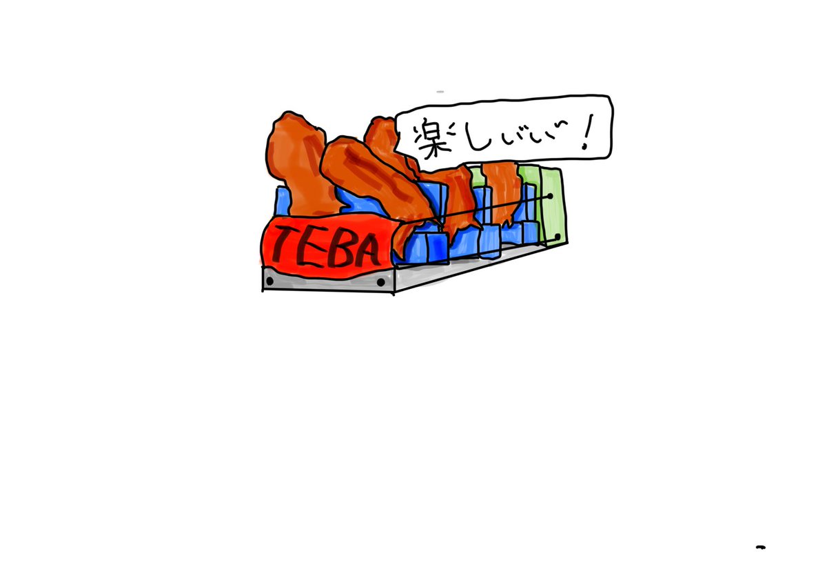 息子くん作 「手羽先ジェットコースター②」 行き先はフライヤーだそーです。 #イラスト #メモ #手羽先