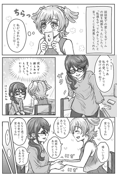 じゅんななな/愛してるゲーム2 引用RTの様子をキッチン側からニコニコ眺めていたななが、自室に戻った後のお話(両想い同士にも刺激的な遊びだった) twitter.com/hijiri_ryo/sta…