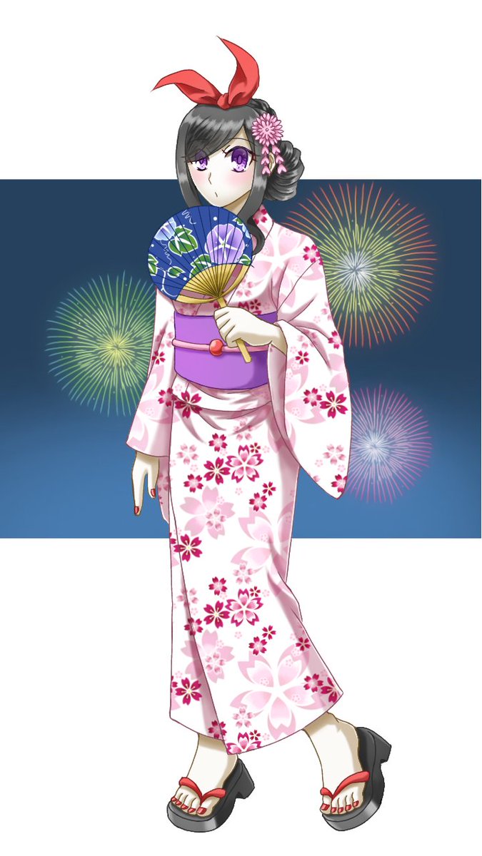 2 10 #今月描いた絵を晒そう 浴衣オフィーリアと北極ラーメンを食べてる姫留 21/08/30 18:35