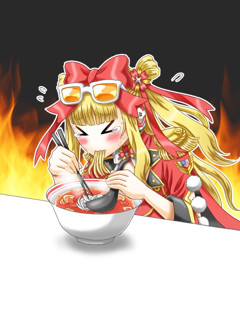 #今月描いた絵を晒そう 浴衣オフィーリアと北極ラーメンを食べてる姫留