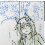 下絵とカラーラフ。ラフの方が良く見えるのは、荒い線を目が好きなように拾ったり補ったりするから。わかってる。でもいつもラフがいちばん良いんだよなあ、とガッカリしちゃう。