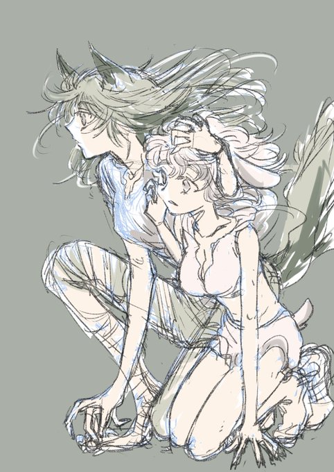 114 495 下絵とカラーラフ。ラフの方が良く見えるのは、荒い線を目が好きなように拾ったり補ったりするから。わかってる。でもいつもラフがいちばん良いんだよなあ、とガッカリしちゃう。 23/06/23 05:10