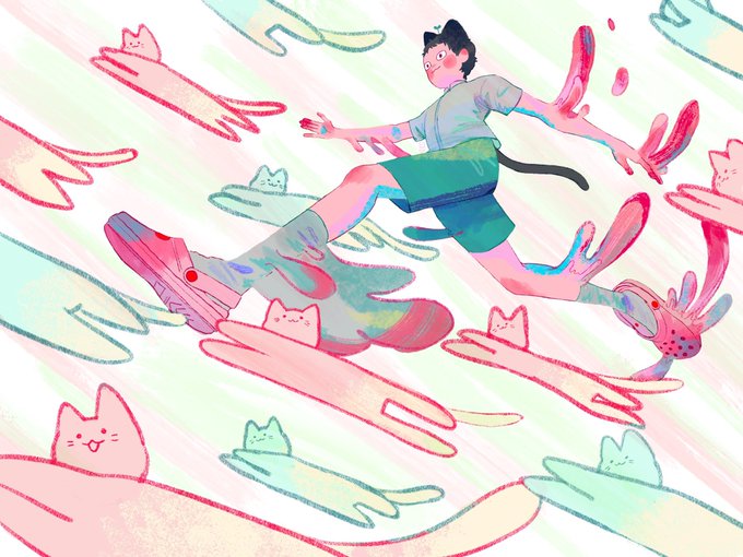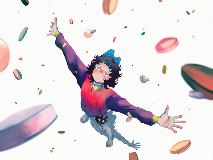 #transartists hello! I'm Hikaru and I'm transmasc! I make art that covers the human condition in a joyous and whimsical manner 🫶