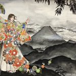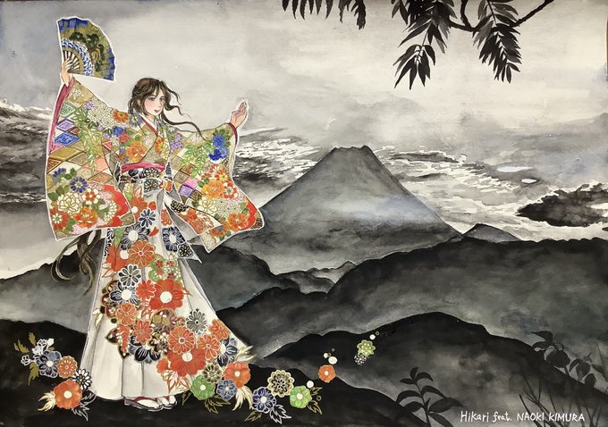 "うつりゆく 季節流れる 時に乗り 心を燃やし 扇をかざす" 私の大切な友人の一人、はるみさんの見事なお着物とかつぎを描かせて頂きました。 はるみさん、ありがとう。 #illustrationart #watercolour #artwork #水彩イラスト #絵描きさんと繫がりたい #illustration #短歌 #水彩画 #煉獄さん twitter.com/lmO7f9nEgLsT…
