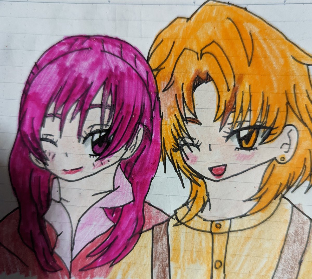 #ファフナー版深夜の真剣お絵描き60分一本勝負 「日野弓子/要澄美生誕祭」。自作絵pixiv.net/artworks/77405…のリメイクです。第1期第10話で明かされた弓子さんの黒歴史\(^o^)/こんなイラストですが、弓子さん、澄美さんお誕生日おめでとう(´・ω・`)