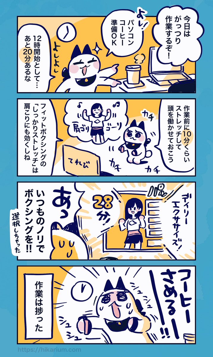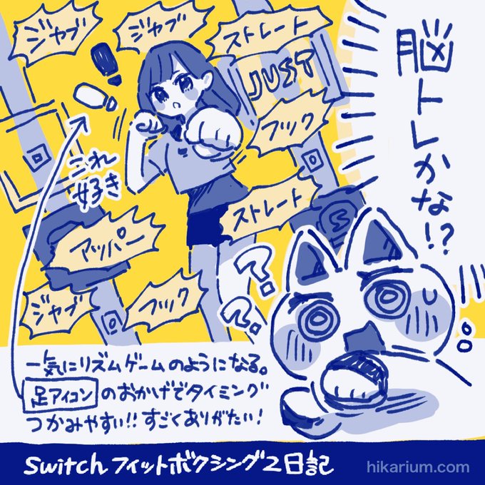 #フィットボクシング絵日記 初日〜10日目の絵日記をまとめました。 フィットボクシング絵日記①【1〜10日目】ゲームの流れ、筋肉痛の対応、痩せた部位などまとめました!|hikarium hikarium.com/fitboxing_diar…