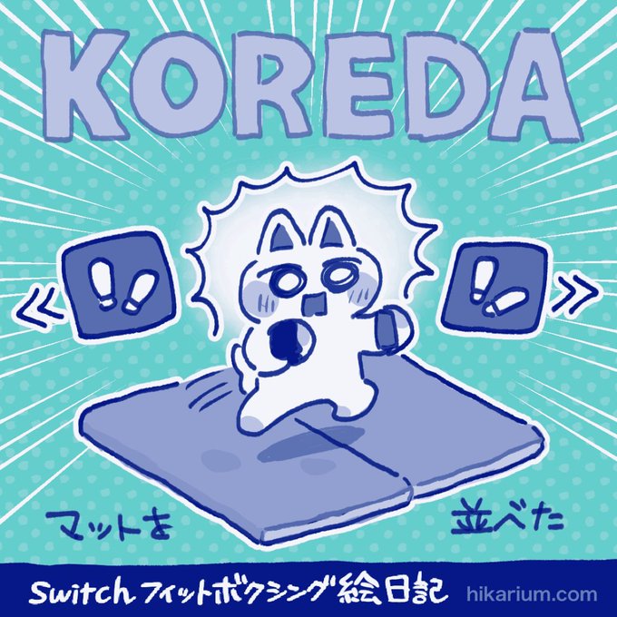 【 #フィットボクシング絵日記 】 19日目。左右ステップが加わる。 「前後に加えて左右に動いたらマットから足はみ出すやん!」と思ったけど、こないだ半分に切ったマットが上手くハマった。 これだ!縦横無尽に動ける!! #FitBoxing2 #フィットボクシング