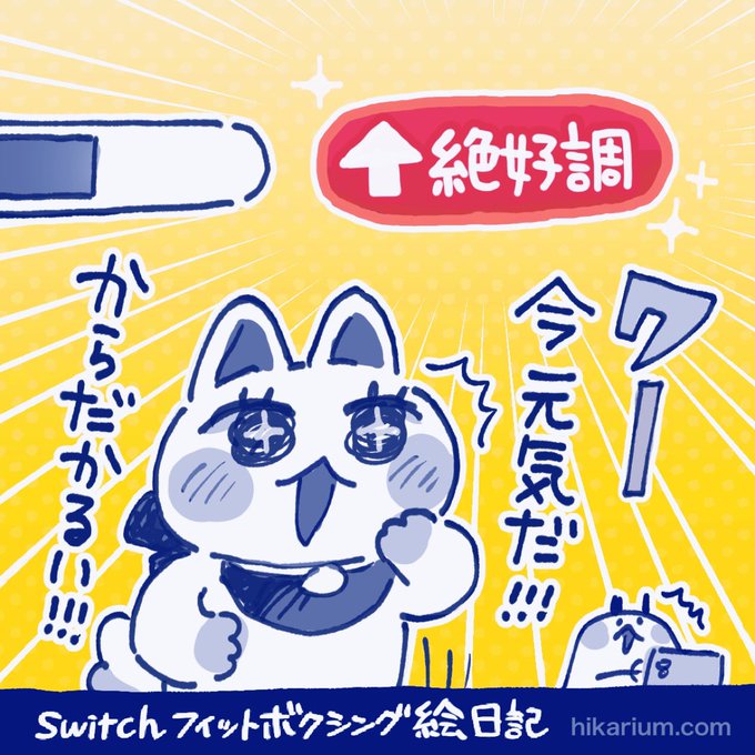 【 #フィットボクシング絵日記 】 20日目。ここ1〜2年、体調がすごく良いと感じる日は稀で「普通」とかだった。 でも運動し始めてから「今日は絶好調かもしれない!」と感じる日も出てきた。これが運動のパワーか🔥 #FitBoxing2 #フィットボクシング