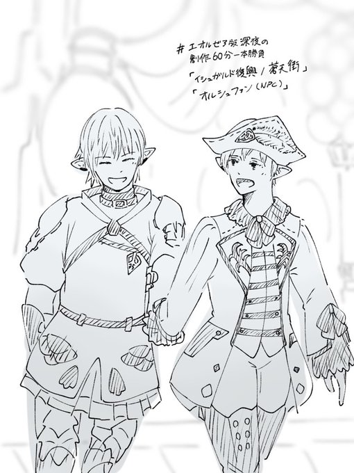23 148 #エオルゼア版深夜の創作60分一本勝負 お題:「オルシュファン(NPC)」 「イシュガルド復興/蒼天街」より フランセルとオルシュファンです(+15分) 22/07/30 23:15