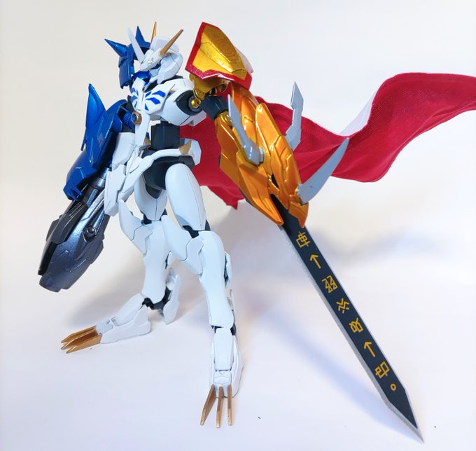 ガンプラによるアルファモンことシナンジュ・エクスタインが完成したのでお披露目。まずは通常形態と王竜剣の公式絵風。GUNSTAさんにもあるので是非に(gumpla.jp/hg/1016267) 詳細はリプ欄に続く #ガンプラ #デジモン #GUNSTA #ガンプラの画像貼るとRTされると聞いて