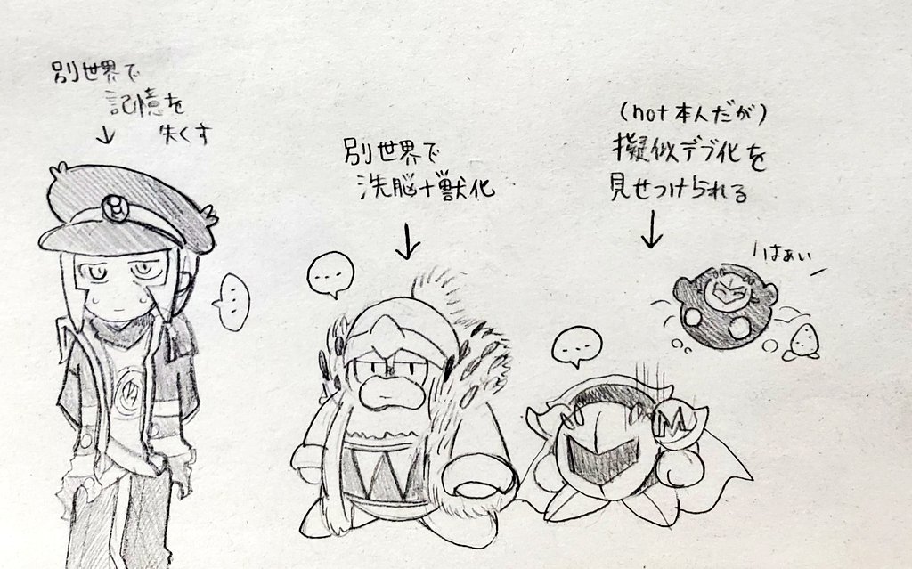 三笠山さん(@mksymnj )のDバースお借りして1コマ🐤ちゃん描かせていただきました🙇 🍖と初対面(ウサギを襲うのを見た位)の頃に、「怪しい茸🍄食べてああなったのか?」と昔の記憶を思い出した可能性あるかなあと…