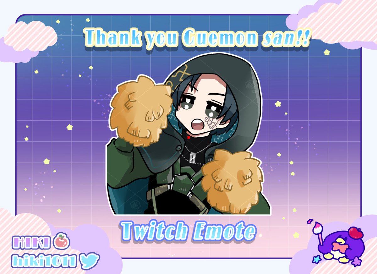 🍎Guemonさんち @Guemon_komado のエモート描かせていただきました! ここ一番のフレフレーな時、もちろん通常のがんばれの時も是非ご活用ください🥳 グエモンさんはTwitchにて定期的にゲーム配信中です!是非チェックー😊 twitch.tv/justice_guemon