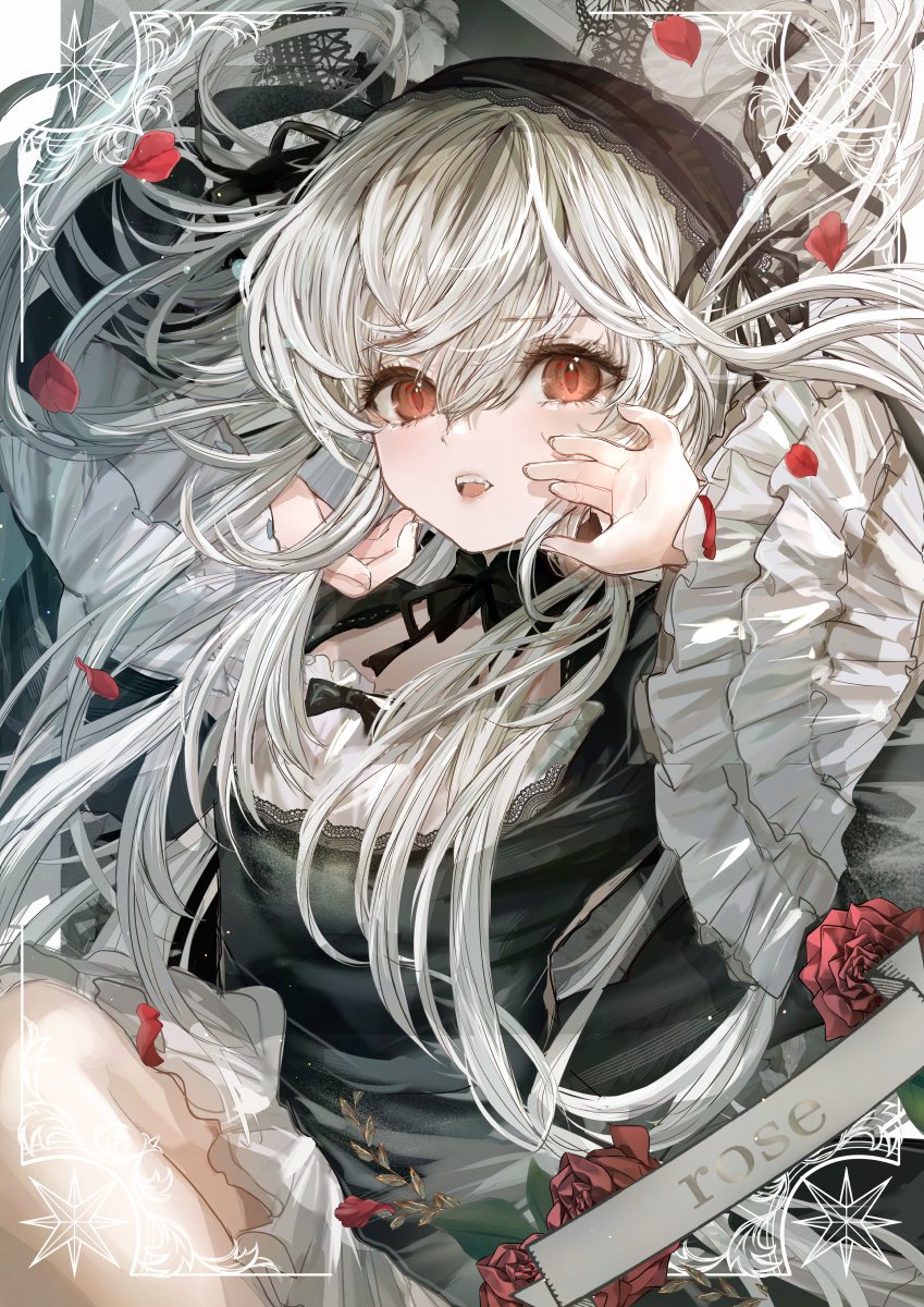 #伸びた伸びないは置いといて2025年自身が思う力作 ローゼン水銀燈のファンアートイラストです🌹 髪の毛の一本一本、フリルの描きこみをすごく頑張った力作です🌸