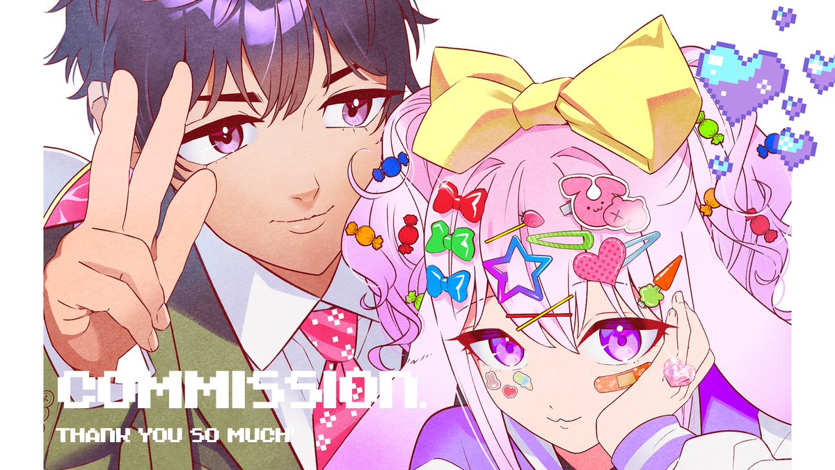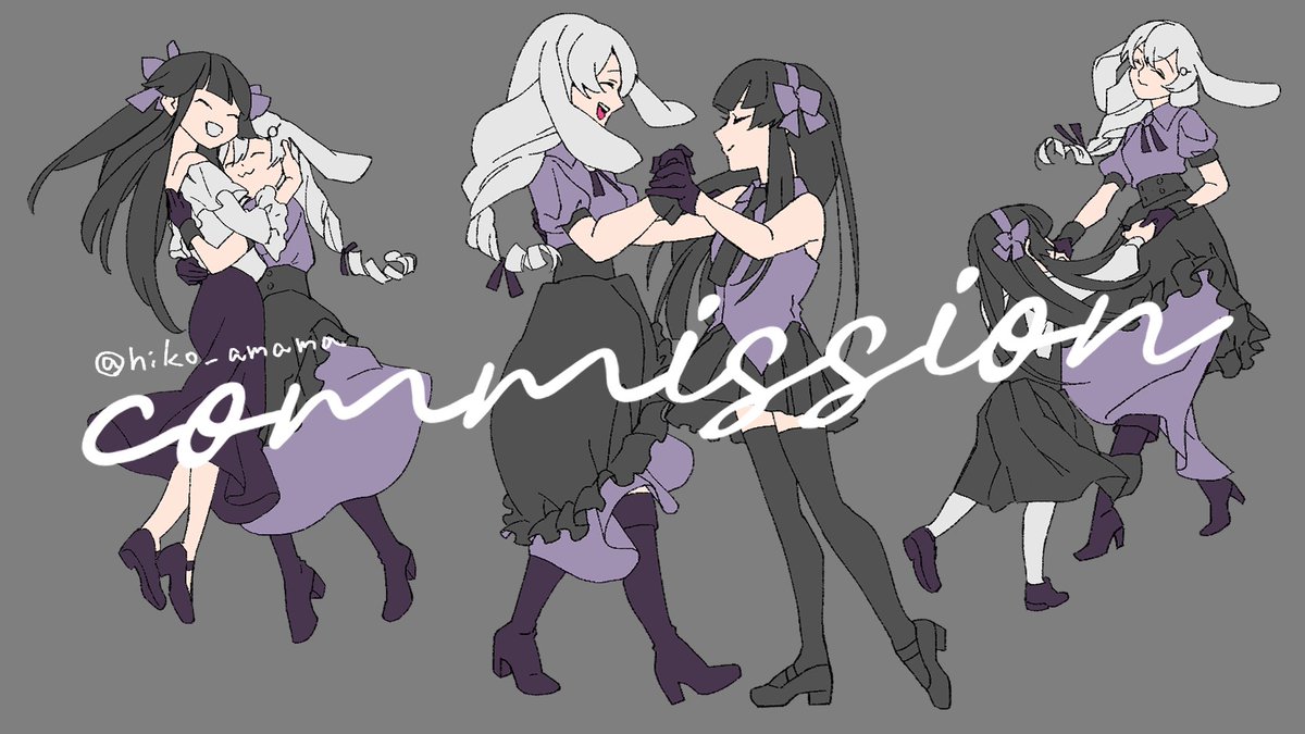 がんばった塗り(1枚目)に比べて質素な塗りになっちゃうけど衣装デザイン(2枚目)やダンスしている絵(3枚目)など描けます!OC・うちの子ちゃんなど、良かったらリクエスト飛ばしてみてね🫰 #Skeb #Commission #skeb募集中 skeb.jp/@hiko_amama