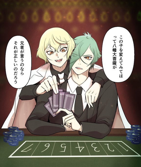 25 93 #膝髭ワンドロワンライアゲイン お題「カジノ」 八幡様のお告げを聞く兄と兄の言葉を聞く弟で潜入先の賭場は大荒れ 23/01/28 00:34