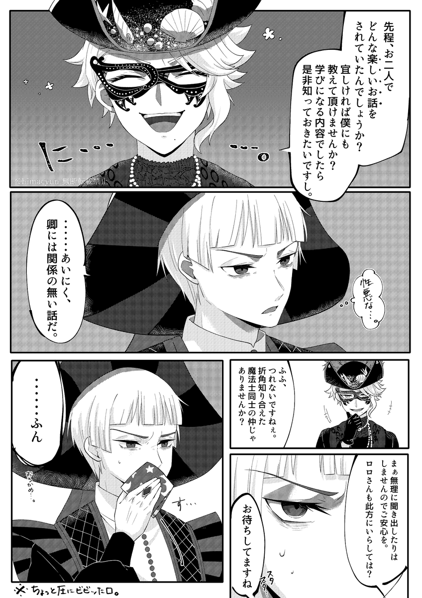 83 1147 監督生♀顔有り(デフォ名)/グロマス3章のセリフ有り。 付き合ってるアズ監🐙🌸前提のロロ監🔔🌸にするつもりが、ただの静かに強め嫉妬心を燃やして他校の先輩に圧を飛ばす🐙になってしまった。 #twstプラス 22/11/10 18:27