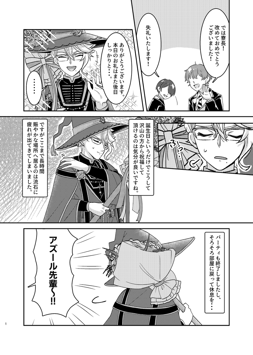 アズ監🐙🌸(顔有り監♀、デフォ名呼び) リアル自分が誕生日だったので🐙🌸にイチャイチャさせただけの漫画 #twstプラス #twst_NL