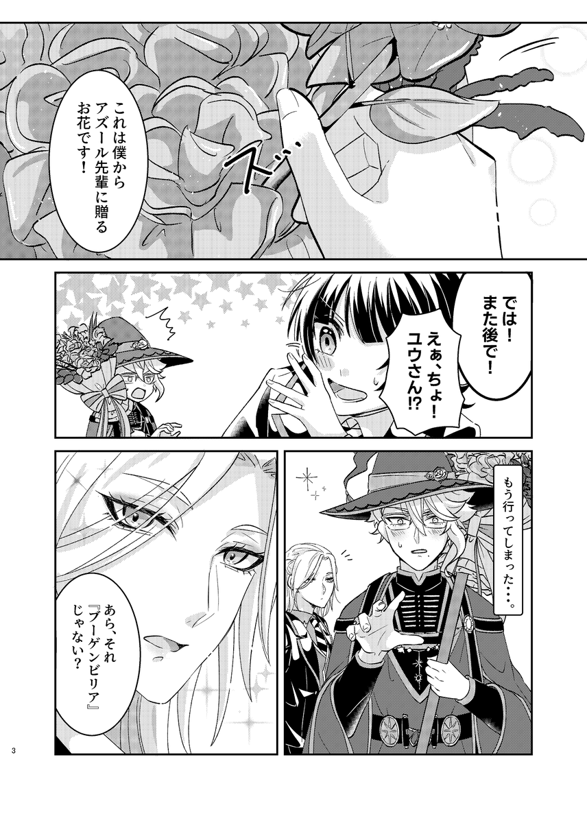 『同じ色』 マレ監🐉🌸(顔有り監♀) 🌸にアタックしようとするもののなかなか思い通りにいかない🐉。 #twstプラス #twst_NL