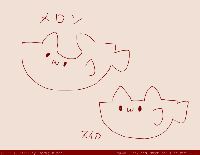 9 18 メロン丸呑みしたおさかな #tegaki_dt 23/07/31 23:33