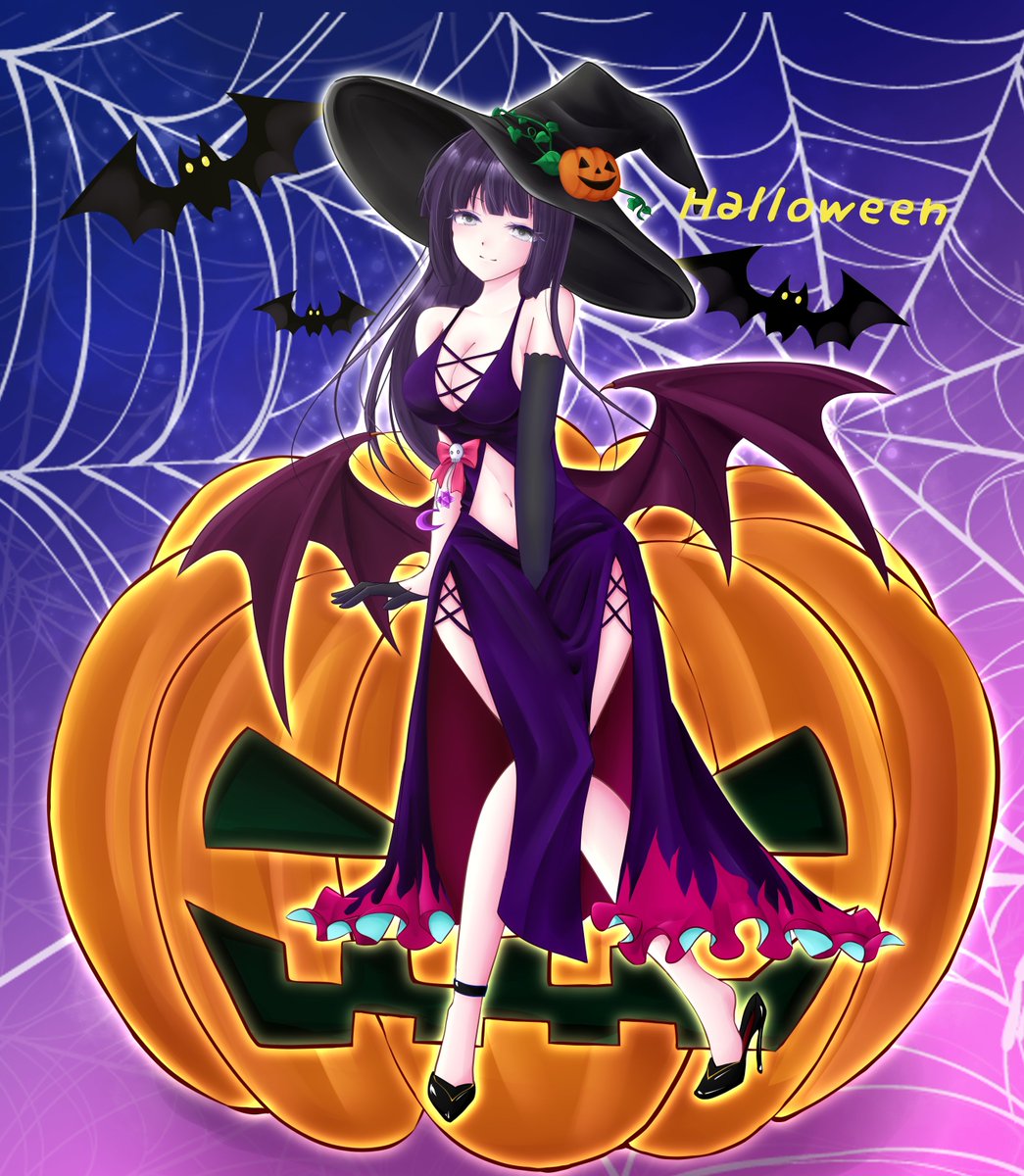 ハッピーハロウィーン!!🎃🦇 うちの子にセクシー魔女子になってもらいました。 花ヶ前若菜(はながさきわかな)百合お姉様です。よろしくお願いします。 あれ?かぼちゃドレスがコンセプトだったことを今思い出した…… #ハロウィンイラスト #Halloween2022