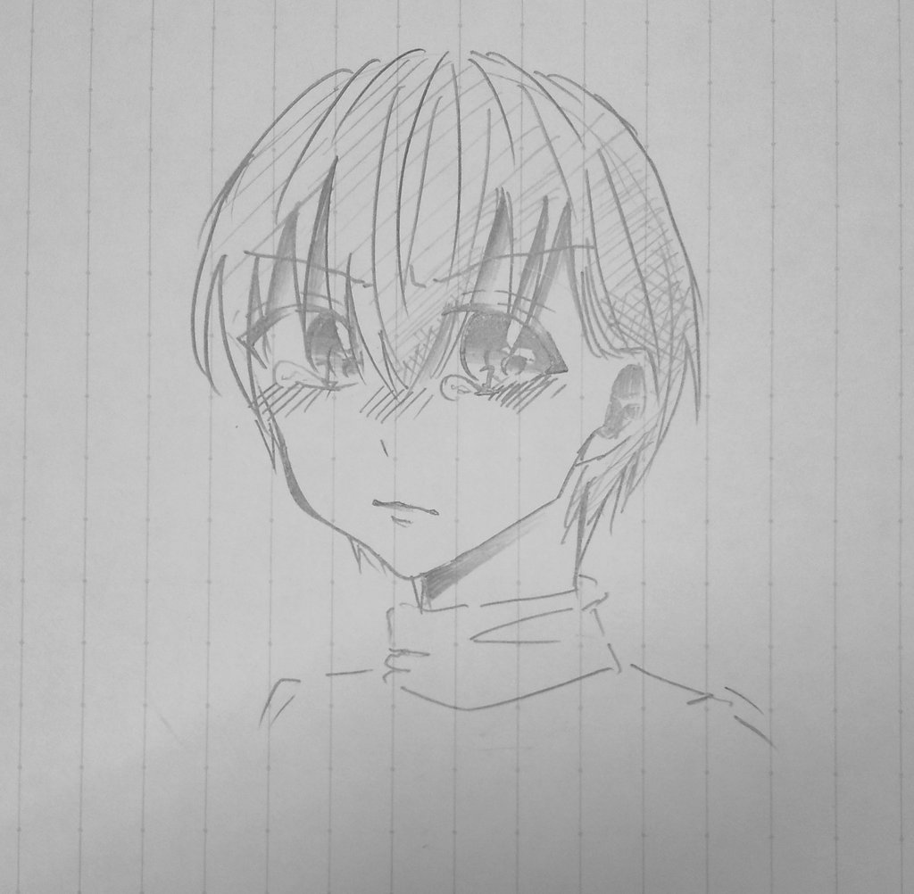 なんか下書きとは全く違う表情になってしまった、でもこれはこれで可愛くかけた気がする|•'-'•)و✧ #イラスト #創作男子 #絵描きさんとつながりたい #冬の創作クラスタフォロー祭り