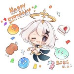 #原神 #原神イラスト パイモンお誕生日おめでとう〜!! 美味しいものいっぱい食べようね!