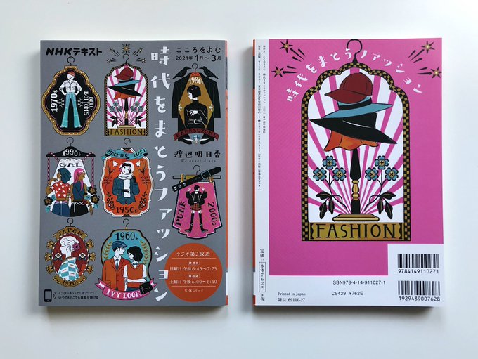 -work- NHKテキスト こころをよむ 時代をまとうファッション 装画を描かせていただきました。 グレーとピンクの素敵なデザインは坂川朱音さんです。 #HimemiS_Illustration