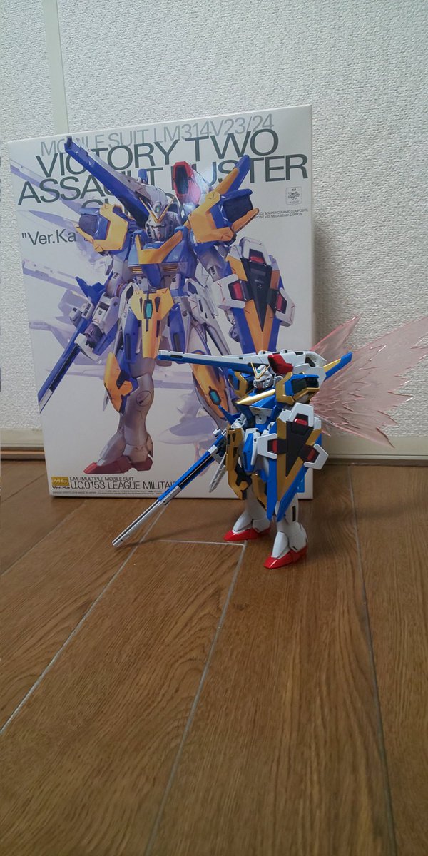 この子を作るまでにいろいろあって戴いてから一年半後に素組みで完成しましたが、一年半前の自分に言いたい。 「お前、これ久々に作るの楽しいって心の底から思う逸品だぞ!?」 MG V2アサルトバスターガンダム #ガンプラの画像貼るとRTされると聞いて