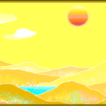 60 538 #イラスト 朝焼けの山々 23/04/07 13:34
