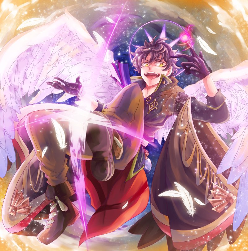 天賦なる才翼アーデウス 去年発行したイラスト本に掲載╰(*´︶`*)╯ 羽とか夕方~夜になるような背景楽しかった思い出 アホ格好いい子大好き #メルストお絵かき