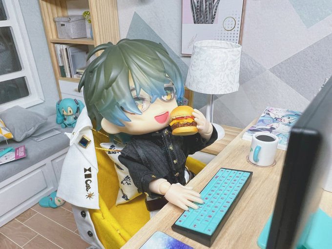 チーズバーガーを食べながら生配信をするのアイクくん💙 #Ikenography