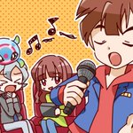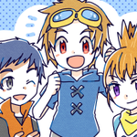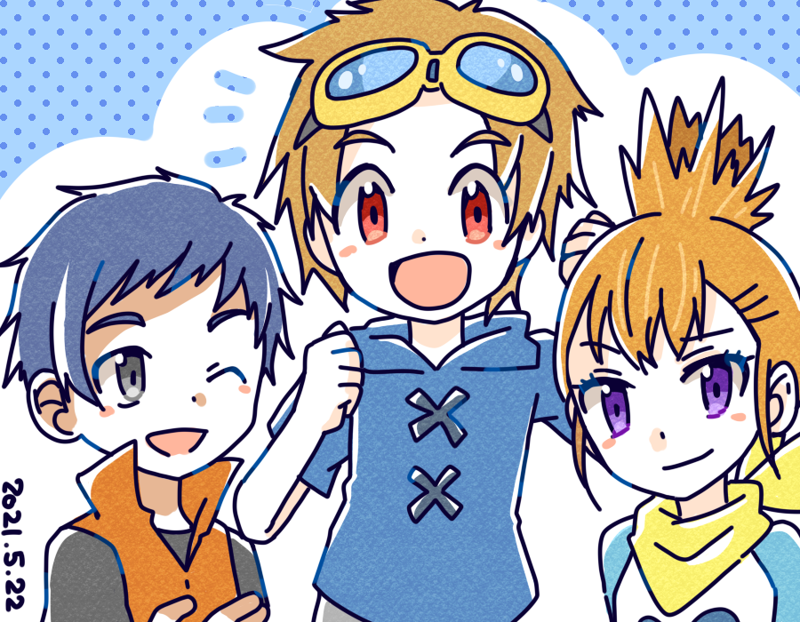 デジモンゴーストゲーム (天ノ河宙&月夜野瑠璃&東御手洗清司郎&ジェリーモン) 6話のカラオケボックスの会のらくがき。 3人が既に仲良しでよかった!!!! 瑠璃ちゃんが既に「きよっち」と呼び始めてたの面白かったw #Digimon #DigimonGhostGame