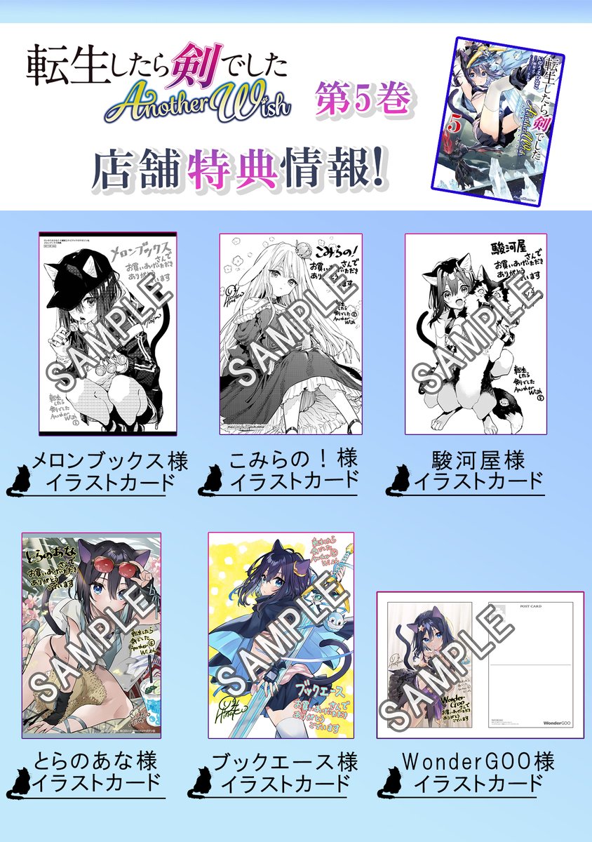 転生したら剣でしたAnotherWish5の書誌情報を作ってもらいました。店舗特典も揃っています。 フルカラーイラストBOOKがついた特装版も発売します!! 9月29日発売。よろしくお願いいたします。 amazon.co.jp/dp/4867163376/…