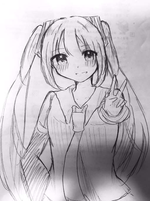 ♡ラフ画♡ メイク中なミクさん💄💖 #初音ミク #イラスト