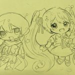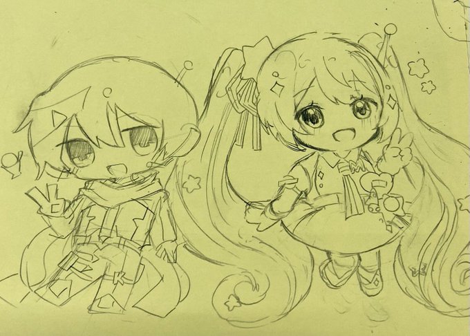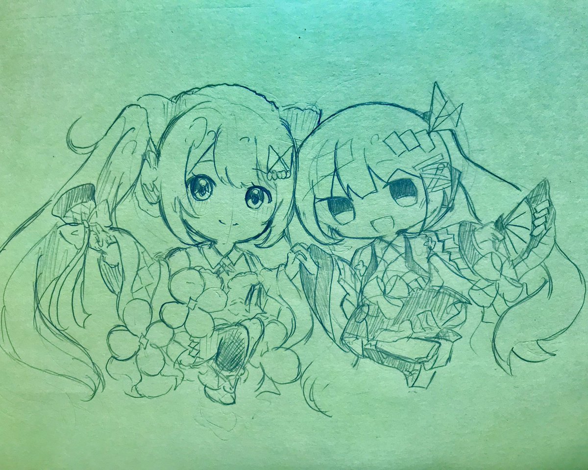 文化祭の準備でミクさんとこはねちゃんを描きました🎶 最近文化祭の準備が忙しくて中々絵を投稿できていなくて申し訳ないです;; #初音ミク #プロセカ #prsk_FA #イラスト