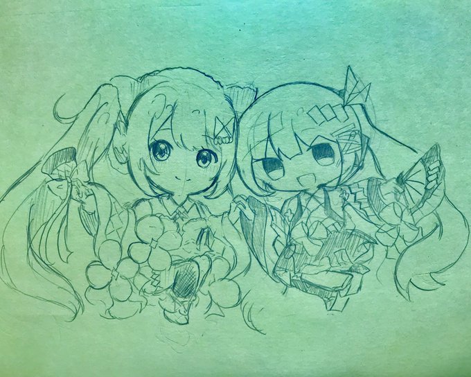 26 114 友達と文化祭の準備その2 冬祭りちゃんと夏祭りちゃん💕 #初音ミク #マジカルミライ10th #イラスト 22/09/10 17:34