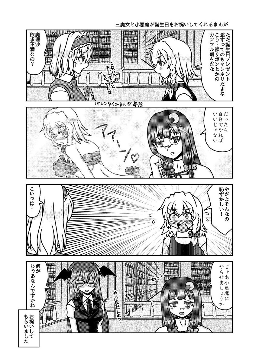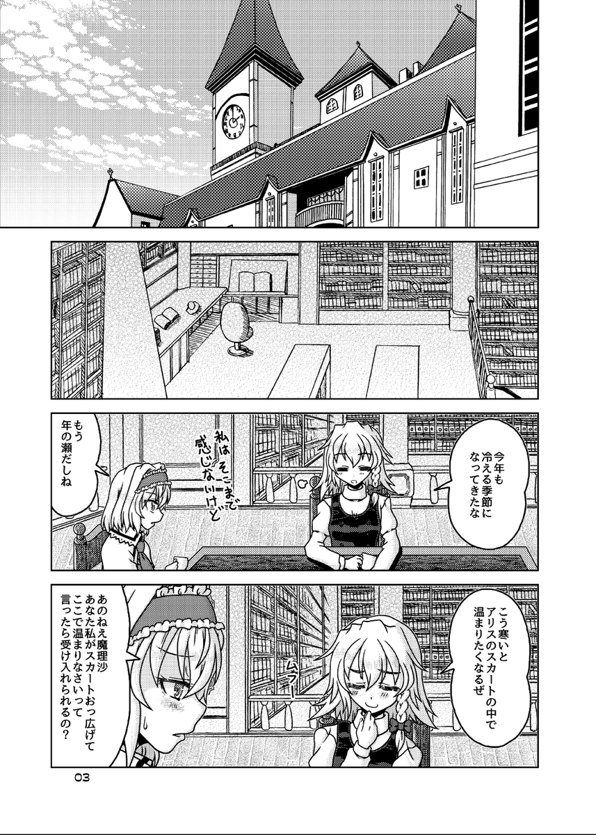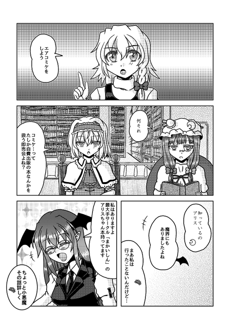 12月31日コミックマーケット101新刊「大図書館こたつ戦記」のサンプルです。(1/3) レミリアに煽られて、アリス、魔理沙、パチュリーの三魔女が新たなこたつを目指す漫画です。 西き15b「Fiesta de Caricatura」にて。 書店委託: melonbooks.co.jp/detail/detail.… #東方project #C101新刊