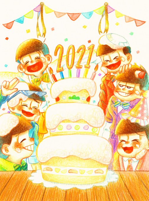 0時は間に合わなかった〜!!! 六つ子ちゃんハッピーバースデー🎉 2021 → 2016 → 2018 #今まで描いた松の誕生日絵を見せる #おそ松さん #六つ子が生まれたよ