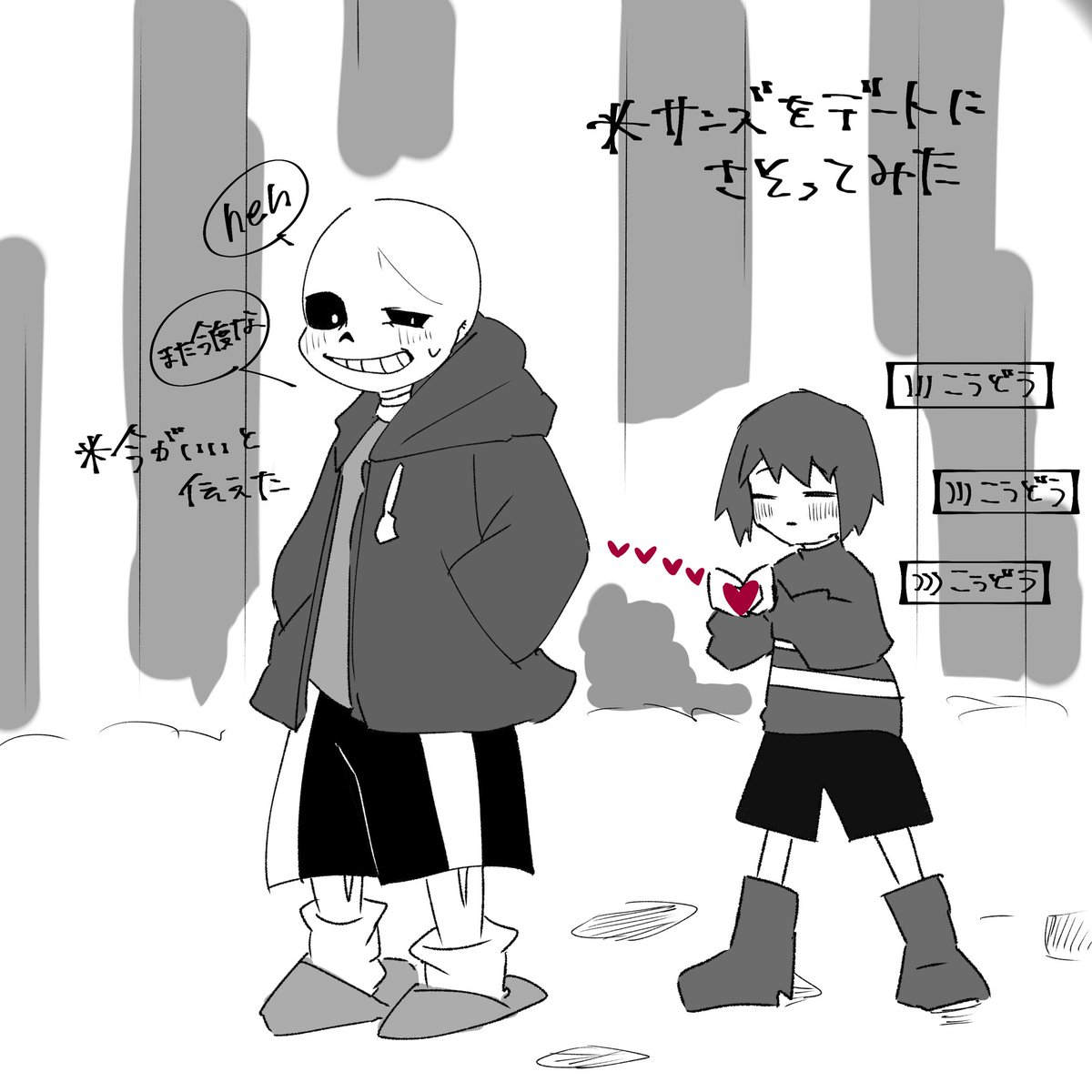 初描きでまだ骨描きなれてないから迷ったけどフリスク可愛くかけたから載せちゃう…!!!!!!!⚠️サンフリ