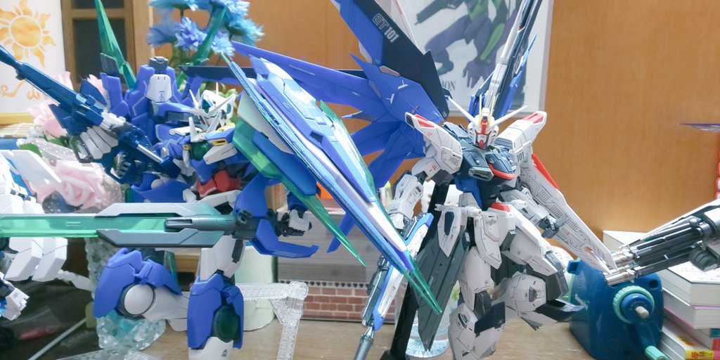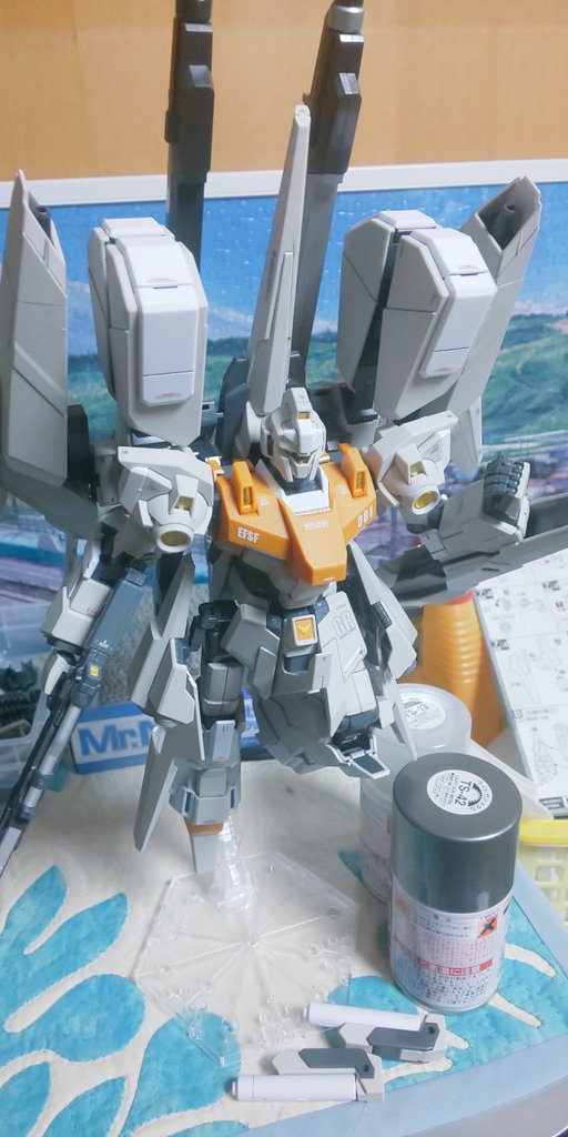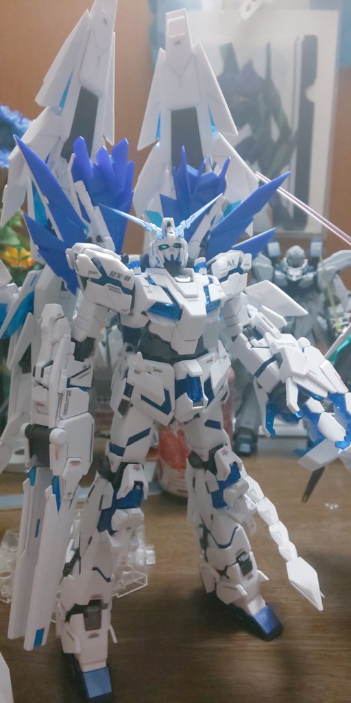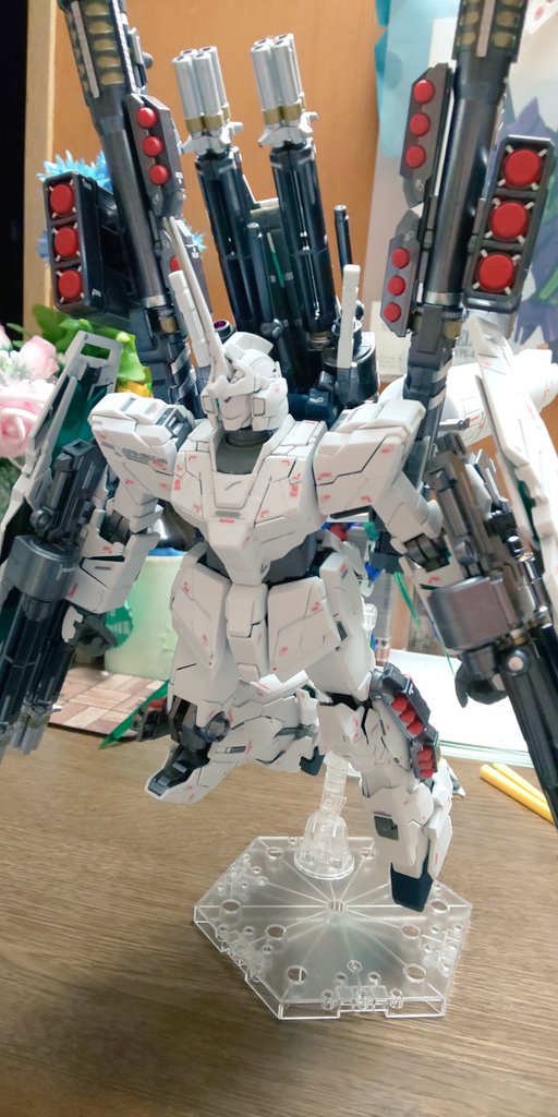 #今年作ったプラモ晒そうぜ #2019年自分が選ぶ今年の4枚 フルアーマーユニコーンが2枚。 露出する内部フレームを塗装し 武装のメタリック塗装までやった 今年イチの最高傑作。 ペルフェクとリゼル(GR配備機)は つや消しのみで内部フレーム未塗装。 ナラティブは今日中に完成するか…