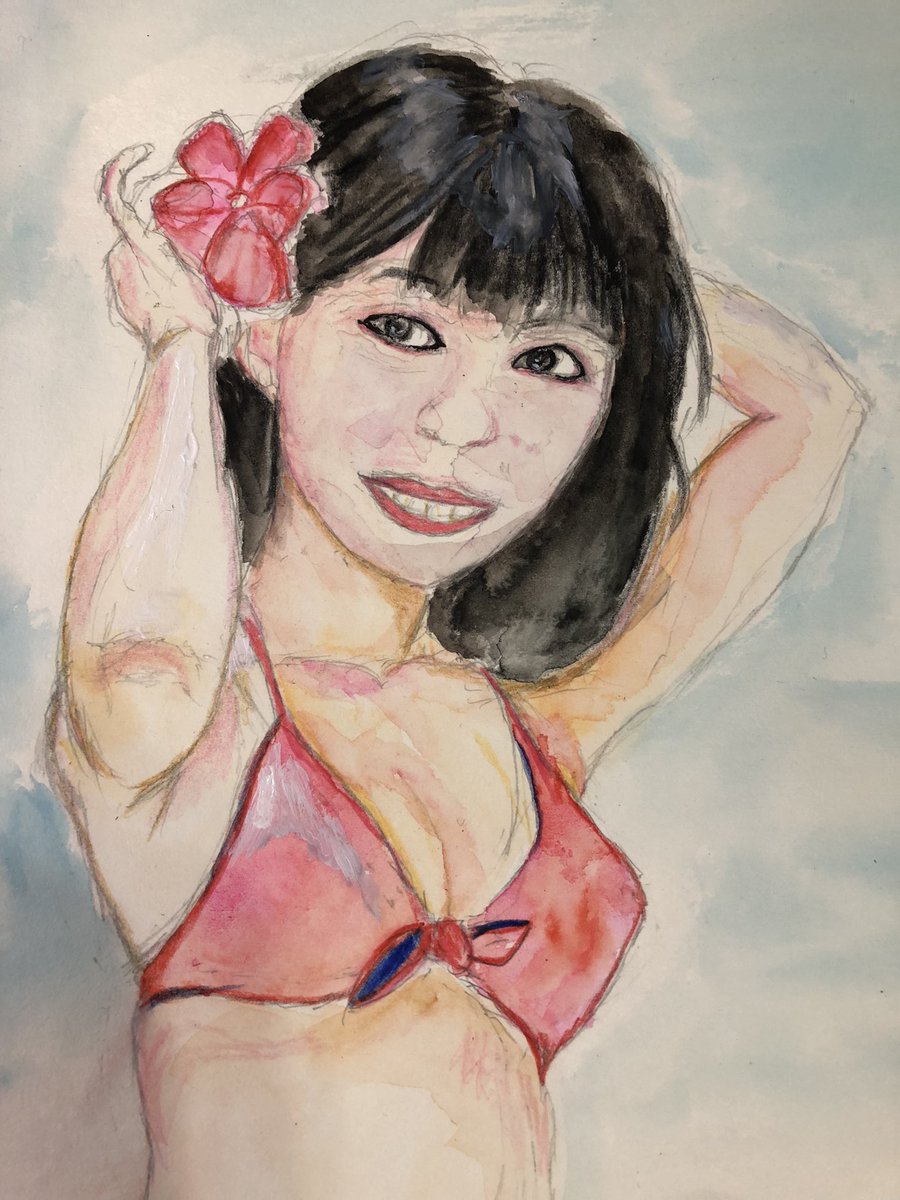 河合奈保子さん描き始めたけど最後まで描けるか不安になってきました。 #絵描きさんと繋がりたい #イラスト #水彩