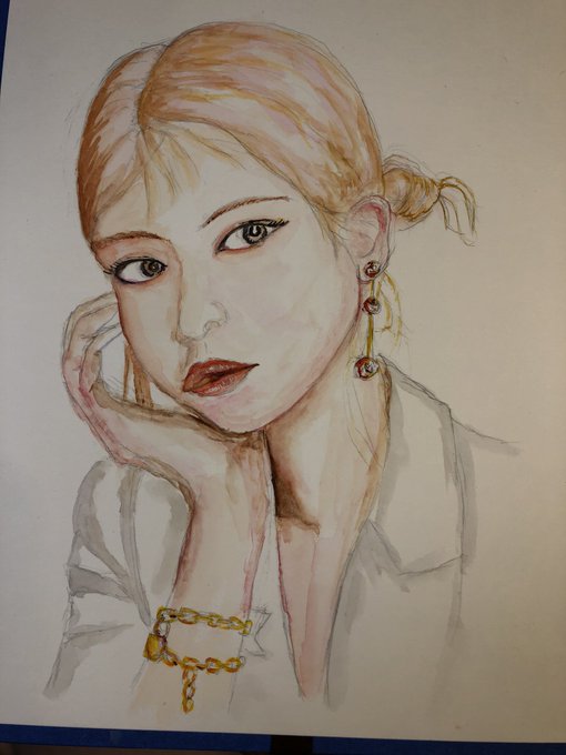 ブラックピンク ロゼ 完成しました。 #絵描きさんと繋がりたい #水彩画