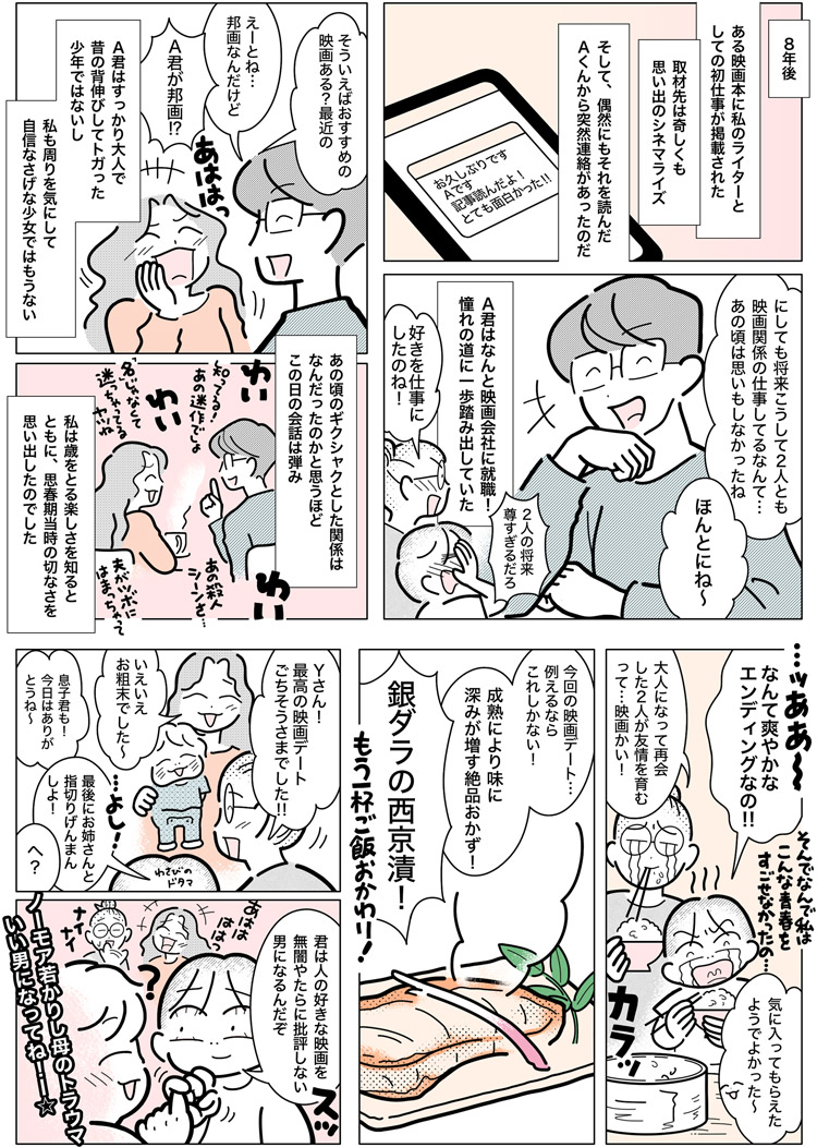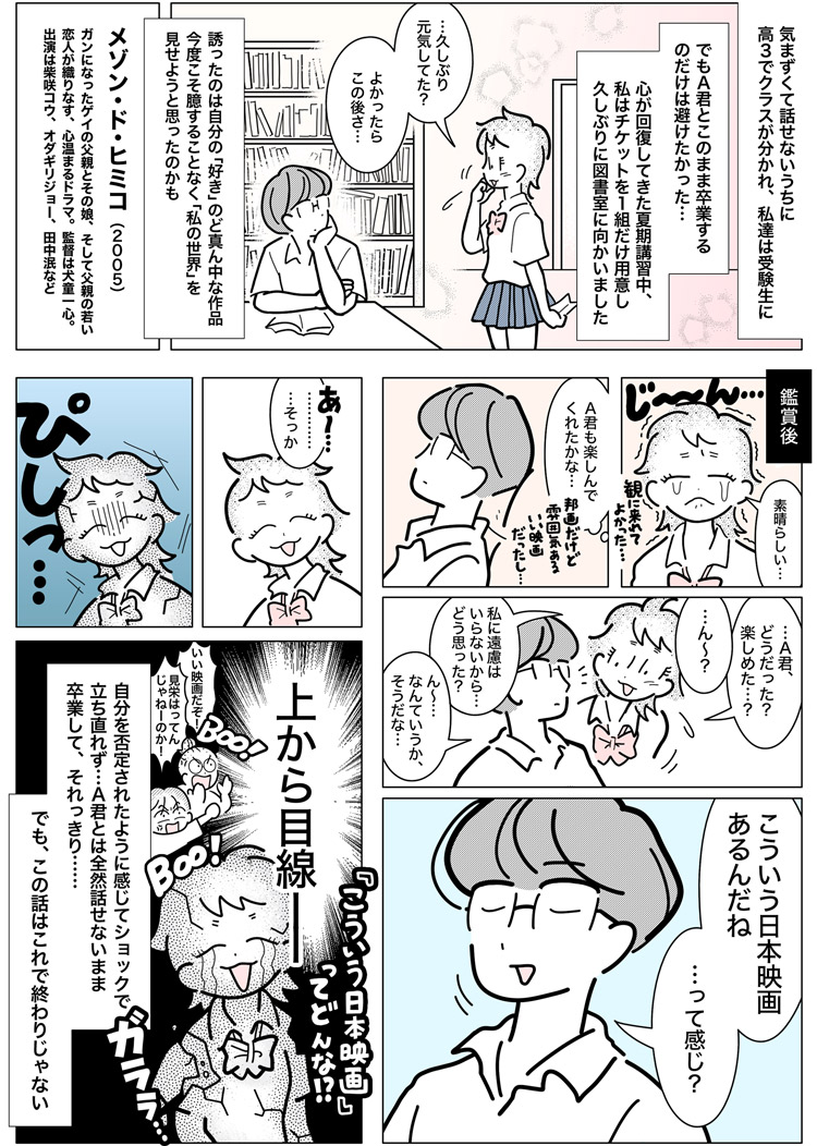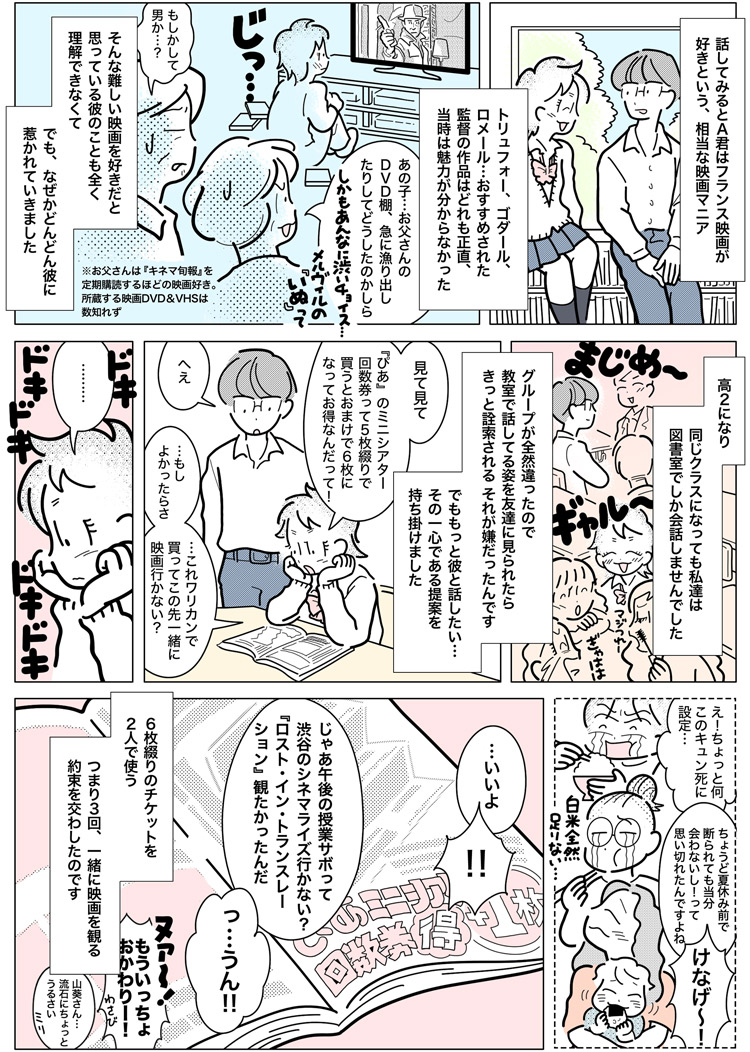 大好物の人の映画デート話で白米食らう🍚 漫画家と担当者の突撃ルポまんが 2杯目02 6枚綴りのミニシアター券をワリカン。憧れの彼と3回デートしてみたら…『メゾン・ド・ヒミコ』etc. #映画デート #メゾン・ド・ヒミコ #漫画が読めるハッシュタグ #レポ漫画 #恋愛 #白米