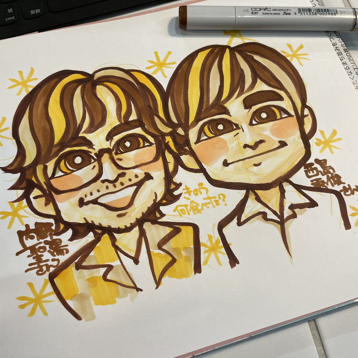 西島秀俊さんと内野聖陽さんをきのう何食べた?バージョンで描いてみました✨ ドラマやっとみれました😆 面白かったー 買い物行って牛乳から低脂肪乳に買い換えました(笑)